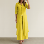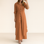 Intemporelle, confortable et ultra-flatteuse, la Robe Longue Maxi à Boutons croisé sublime toutes les silhouettes. Sa taille empire drapée souligne délicatement la ligne, tandis que la jupe évasée offre un tombé fluide et aérien. Les manches mi-longues ajoutent une touche raffinée et les poches latérales discrètes rendent la robe aussi pratique que chic. Avec des escarpins pour un rendez-vous ou des sandales pour la journée, elle s’adapte à toutes vos envies.