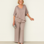 The Camille™ set combines refinement and ease for all occasions. Its flowing top with an asymmetrical V-neckline enhances the silhouette, while the airy butterfly sleeves add lightness and movement. Paired with high-waisted wide-leg pants, it offers a graceful look and optimal comfort. With its soft and flowing fabric, this set is perfect for both a party and a night out on the town, without compromising on style.