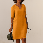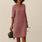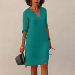 Lightweight, elegant, and incredibly comfortable to wear, Lou™ is the dress that accompanies you on any occasion. Its soft, breathable fabric moves with you, while its loose V-neck design adds a touch of timeless modernity. Ideal for a summer afternoon, a vacation dinner, or a relaxing moment, it offers you comfort and style effortlessly.