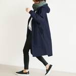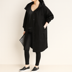 • Coupe : oversize mi-longue, ourlet légèrement plus long au dos pour plus de couvrance