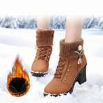 Leurs lacets décoratifs, leurs finitions délicates, leur revers tricoté et leur ornement perlé apportent une touche romantique et sophistiquée unique. Chaque couture est pensée pour offrir durabilité et confort, tandis que la combinaison des matières crée un contraste harmonieux entre chaleur, glamour et finesse. Une pièce travaillée avec soin pour traverser les saisons avec style.